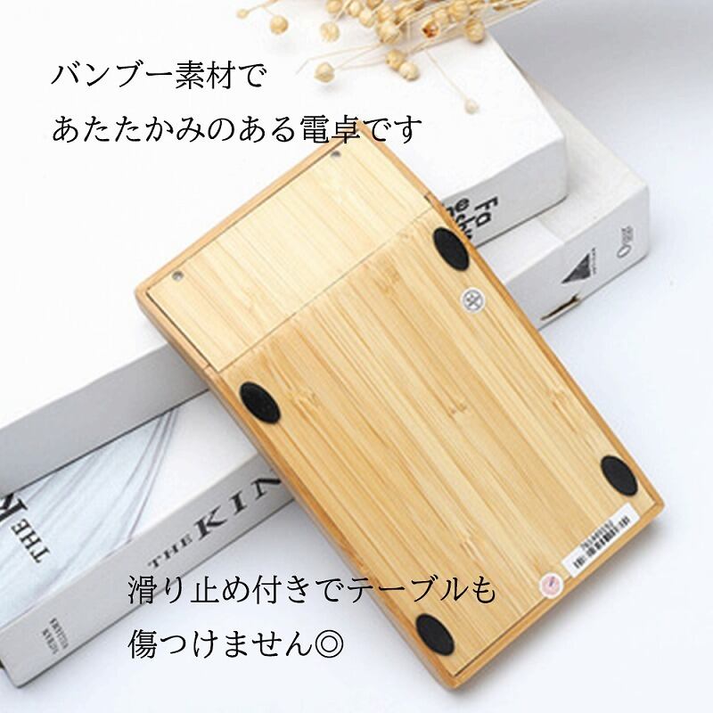 天然竹の風合いであたたかなデザインの電卓。