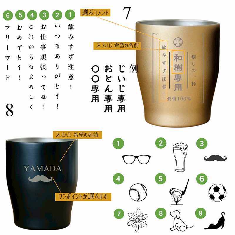 そんな使い勝手の良いステンレスタンブラーに8種類から選べるデザインを揃えました。名入れ彫刻無料で承っております◎